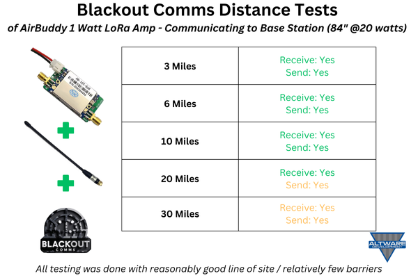 All tests with this AirBuddy amp were done by viewing signal strength, attempting direct messages, and receiving direct messages/broadcasts/delivery confirmations to & from my fixed position base station.